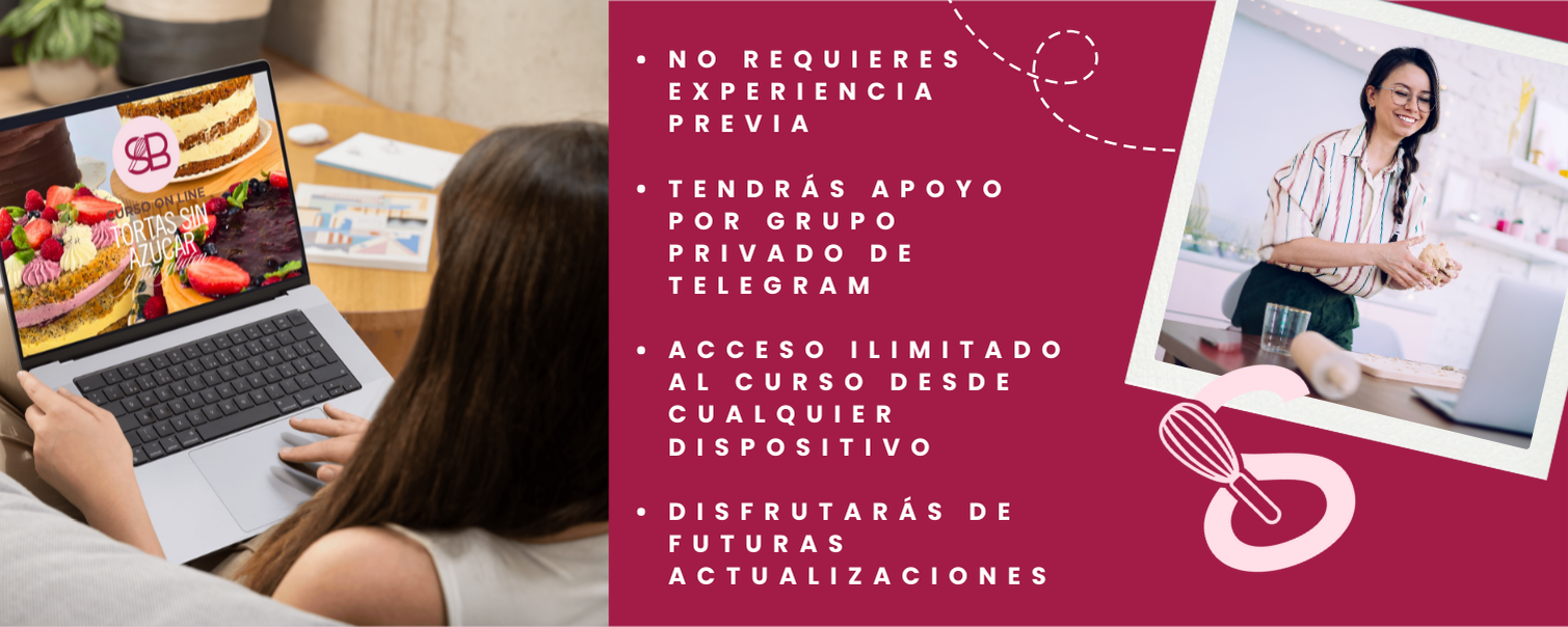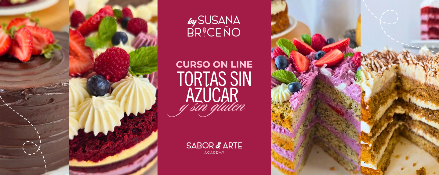 Postres que nutren, cuidan y encantan ✨ Aprende a preparar tortas irresistibles, 100% libres de azúcar y gluten, sin renunciar al sabor ni a la textura. Aptas para celíacos, diabéticos y estilo de vida fit. ¡Paga en Chile en 3 cuotas sin interés!